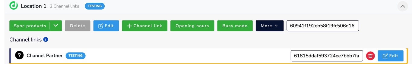 Each location is connected to your test channel link with its own unique channelLinkId. When you create an order, make sure you include the correct channelLinkId in the URL.