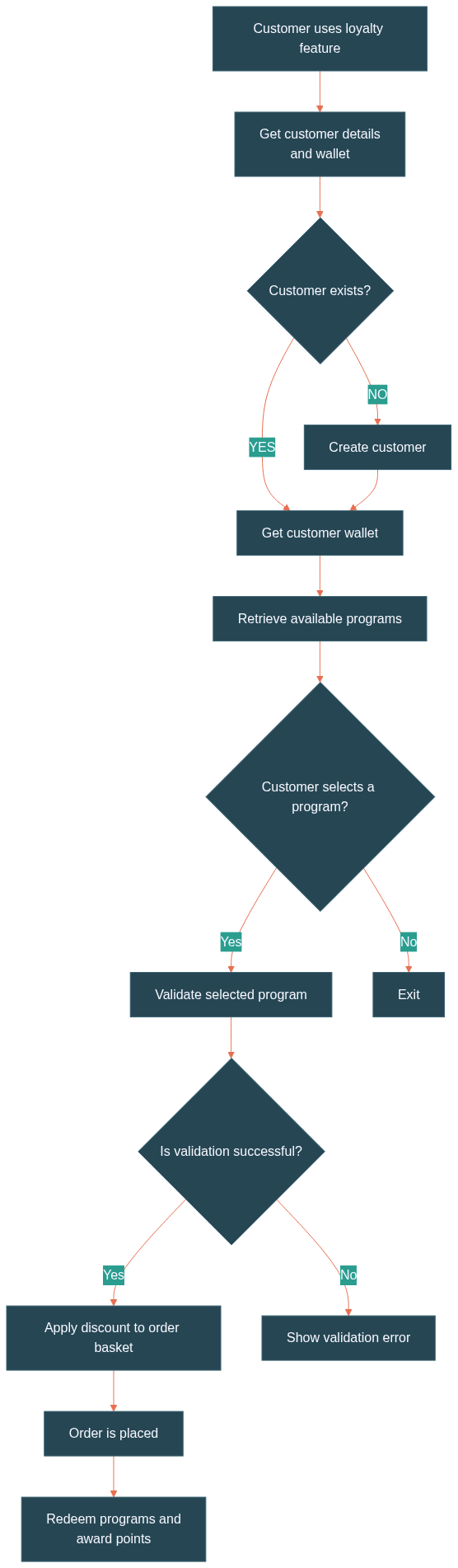 The following sections will guide you through each part of the loyalty API, from managing customer profiles to handling the final stages of program redemption.